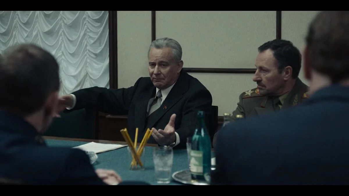 Например, во время спора академика Легасова (одного из конструкторов реакторов) с Борисом Щербиной (зампред СовМина и крупная политическая фигура) — пролетать над реактором и убедиться в его разрушении или нет — Легасов в двух словах доказывает свою точку зрения и убеждает не делать этого.