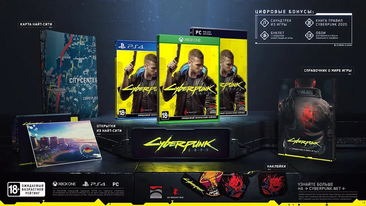 Всего у Cyberpunk 2077 будет три издания: стандартное цифровое, стандартное розничное и коллекционное.