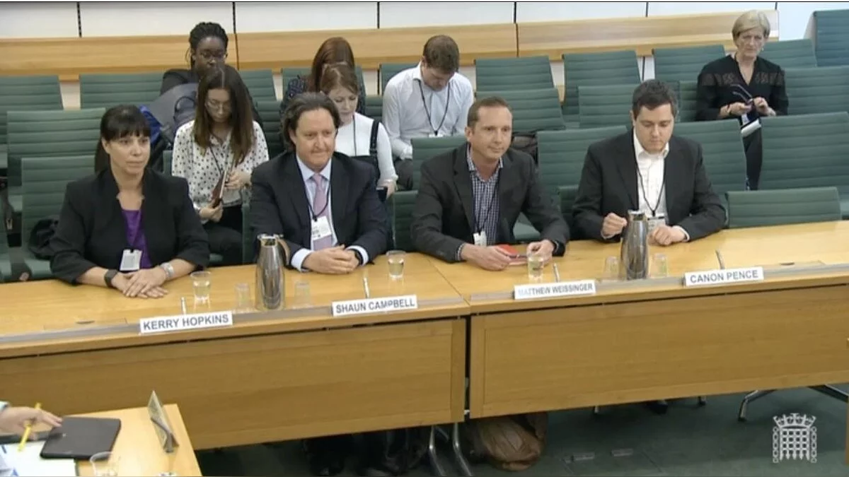 Вопросы задавали политики Брэнден О’Хара (rendan O'Hara), ранее работавший в медиа индустрии, и Ян Лукас (Ian Lucas), юрист и председатель комиссии.