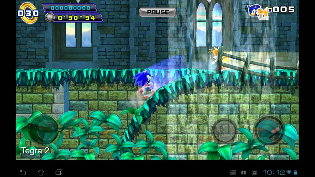 Оптимизированная для платформы Tegra 3 игра Sonic 4 демонстрирует богатство графических нововведений по сравнению с обычным Android и IOS девайсами. Сразу заметно увеличение числа полигонов, более четкие декорации, тени от воды и дополнительное освещение. Впечатляет то, как много консольных графических опций можно увидеть в планшетах среднего уровня.