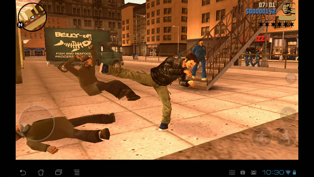 GTA3 на максимальных настройках вызывает определенных проблемы с FPS на планшете Nexus 7, однако не большое их снижение позволяет поднять частоту кадров до комфортных 30 FPS, получить плавный игровой процесс и более отзывчивое управление.