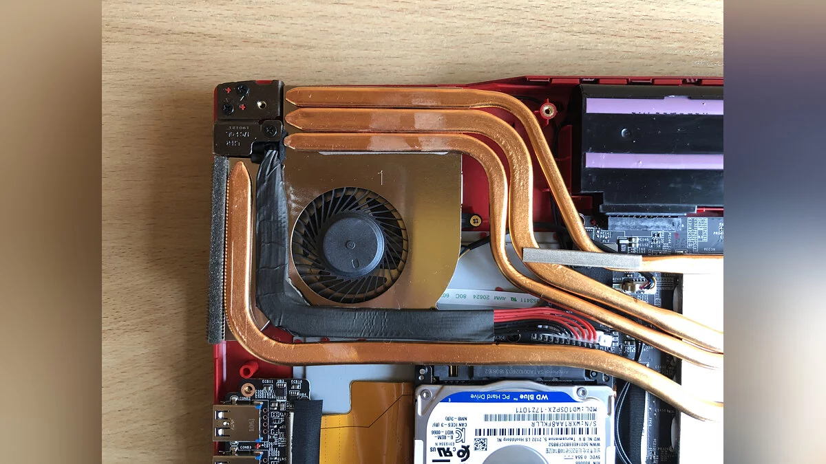 В ноутбуке используется система охлаждения Cooler Boost 5. Семь тепловых трубок отвечают за раздельное охлаждение GeForce GTX 1660 Ti и процессора i7.