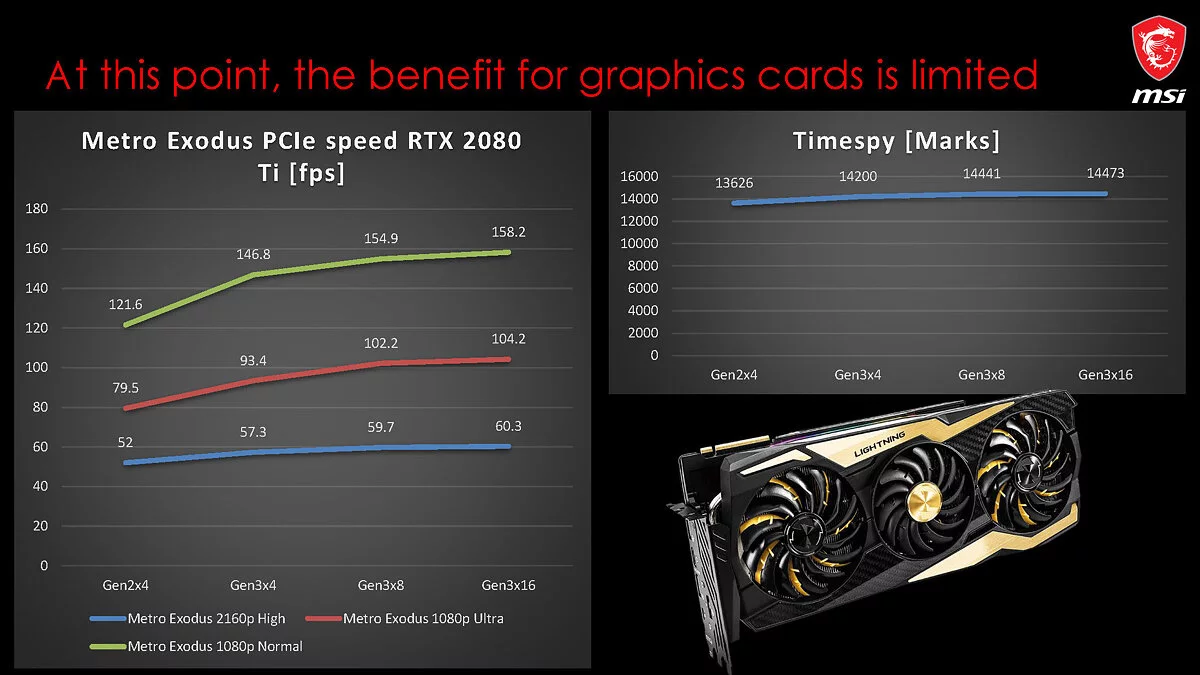 Увеличенная пропускная способность позволяет видеокартам немного повысить FPS в играх, но существенного прироста частоты кадров по сравнению с PCIe 3.0 не стоит ожидать. На изображении ниже можно увидеть результаты в игре Metro Exodus.