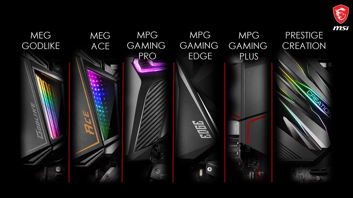 Материнки разделены на три серии — MEG, MPG, MAG, Prestige и PRO.