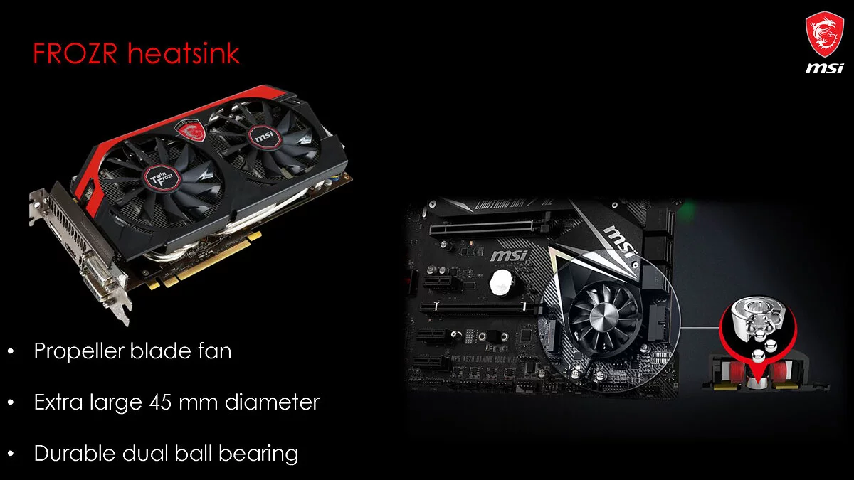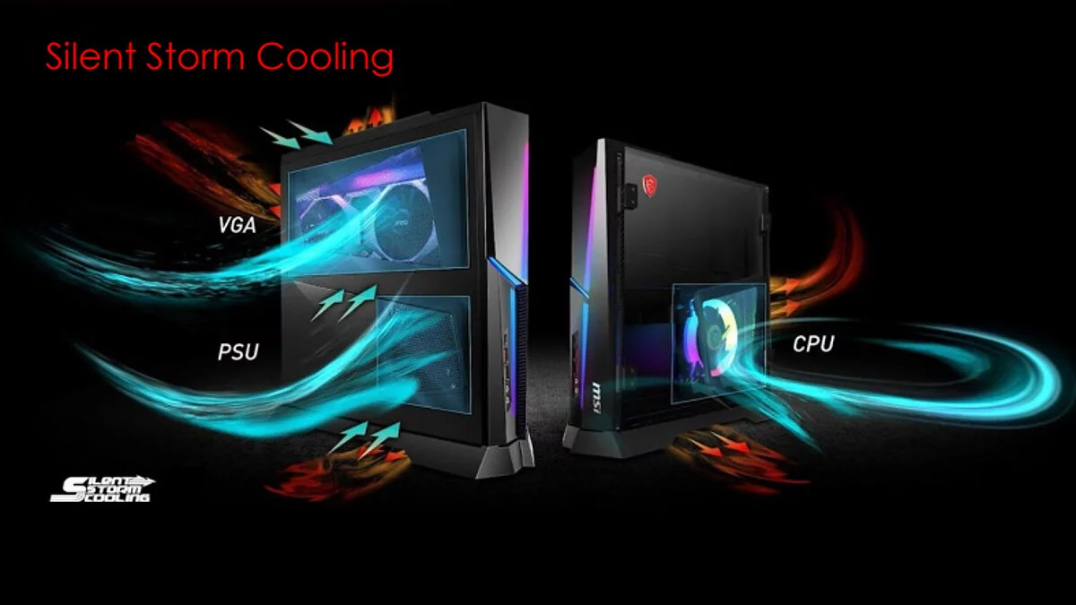 Среди особенностей MSI выделяет систему охлаждения Silent Storm, которая обеспечивает приемлемые температуры в трех областях компьютера — PSU, VGA и CPU.
