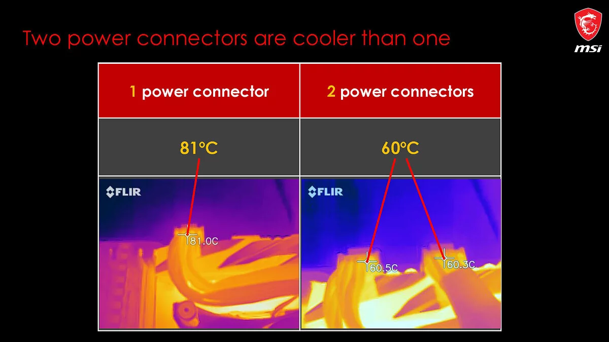 В материнке используются два процессорных разъема питания с температурой под нагрузкой в 60 градусов против 81 градуса в случае одного процессорного разъема питания.
