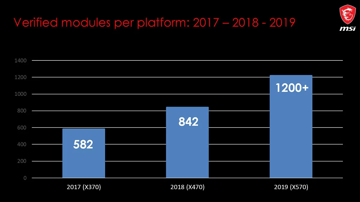 MSI протестировала на материнках X570 свыше 1200 модулей памяти от различных производителей, чтобы улучшить совместимость.