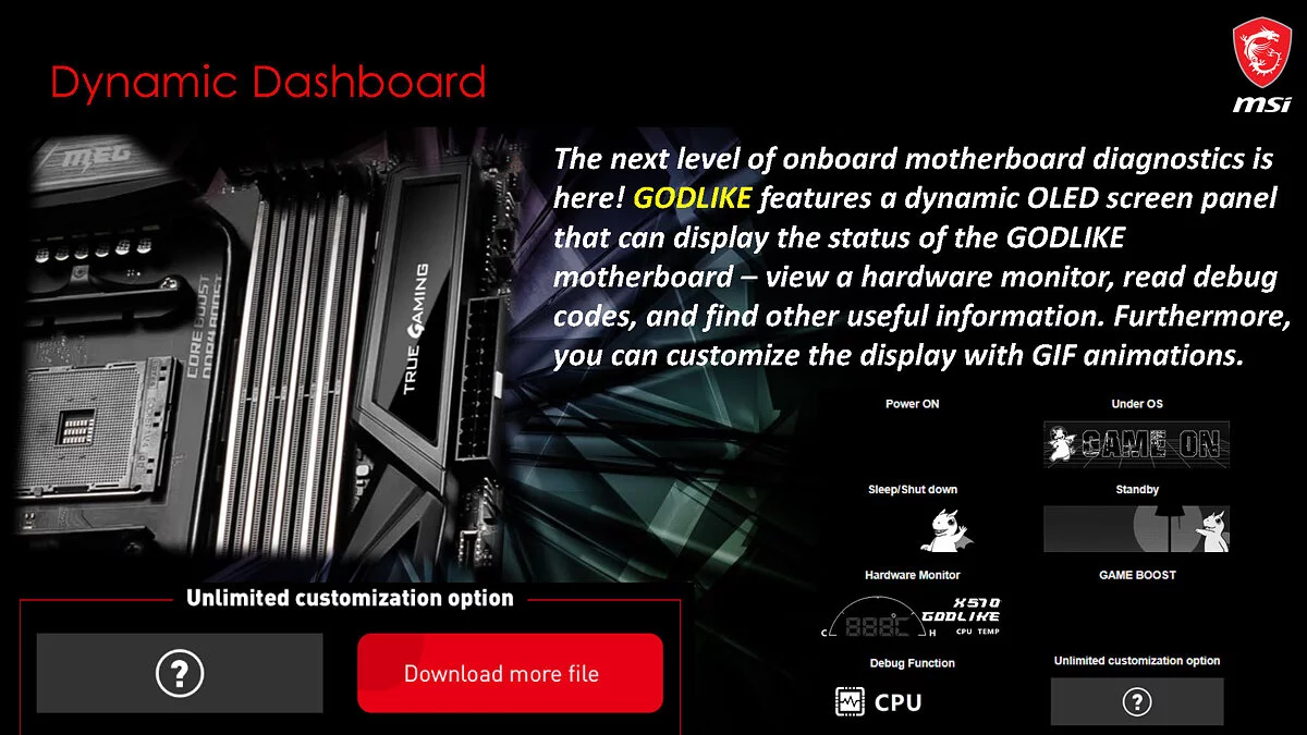 Серия MEG (MSI Enthusiast Gaming) включает в себя две модели — MEG X570 ACE (369 евро) и MEG X570 GODLIKE с OLED-дисплеем (777 евро).