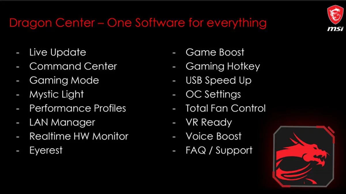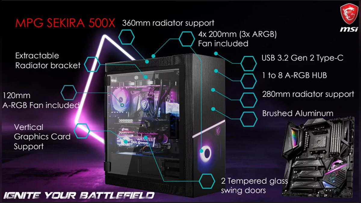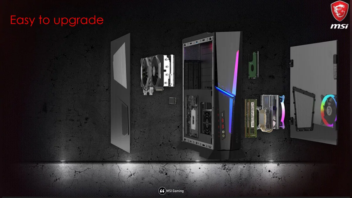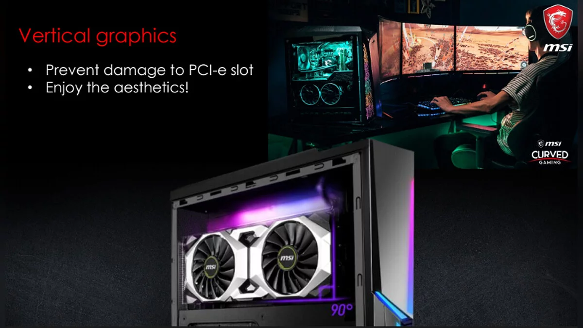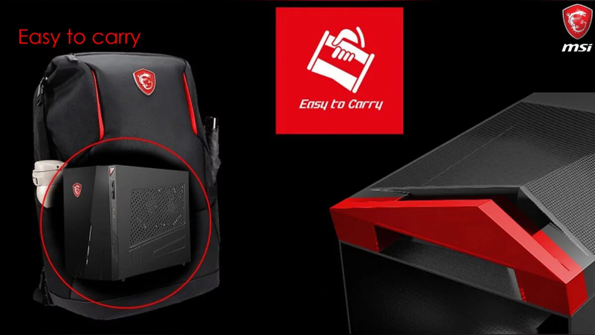 Среди особенностей также выделяется легкость апгрейда, возможность переноски в рюкзаке, вертикальное размещение видеокарты, технологию Audio Boost и кастомизируемую подсветку Mystic Light.