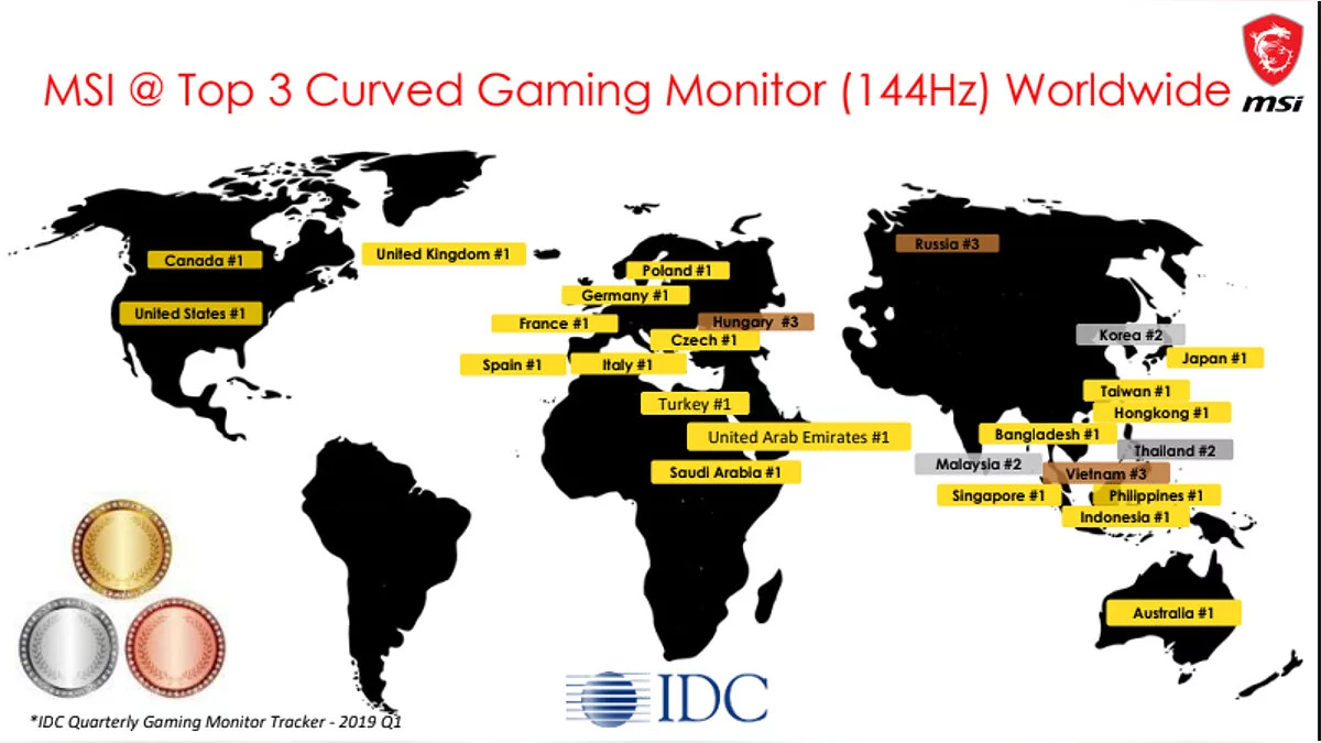 Геймерские мониторы MSI входят в список самых популярных во множестве стран мира. К примеру, в России они занимают третье место.