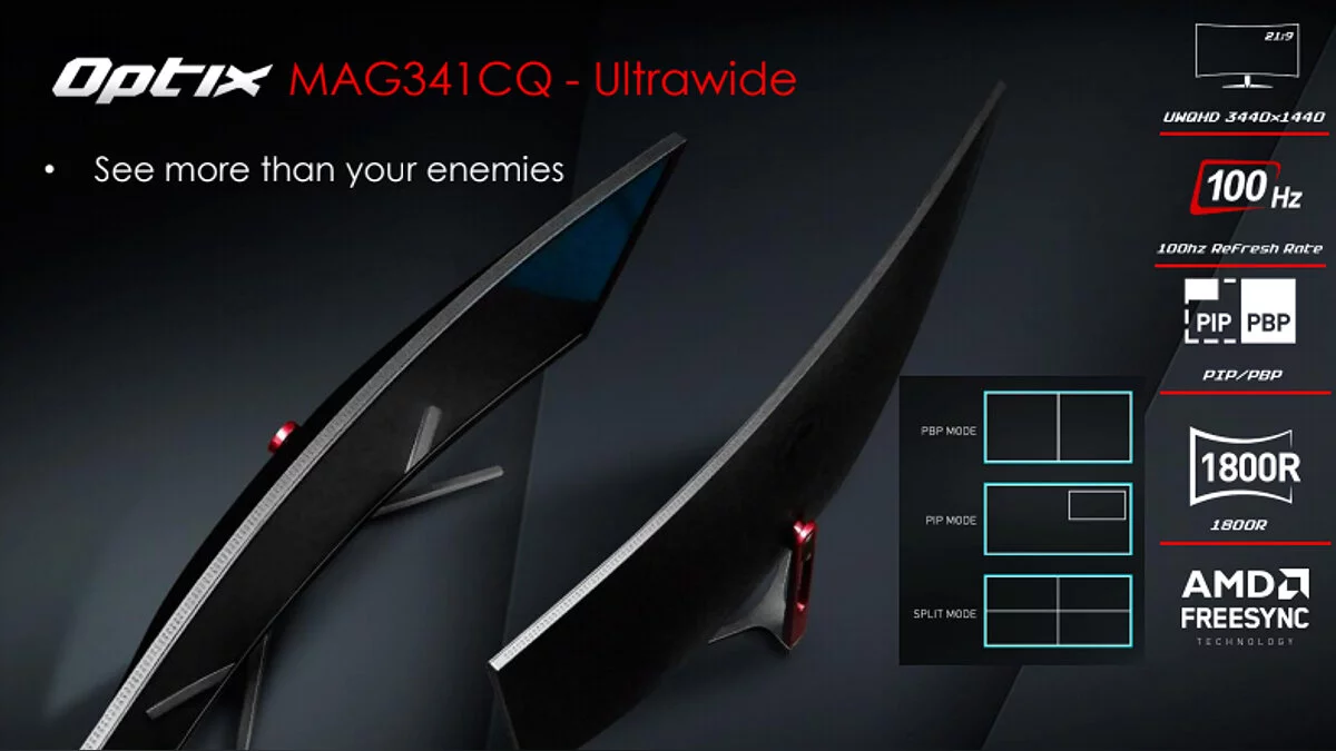 - MAG341CQ (ультраширокий, 3440x1440, AMD FreeSync, 100 Гц);