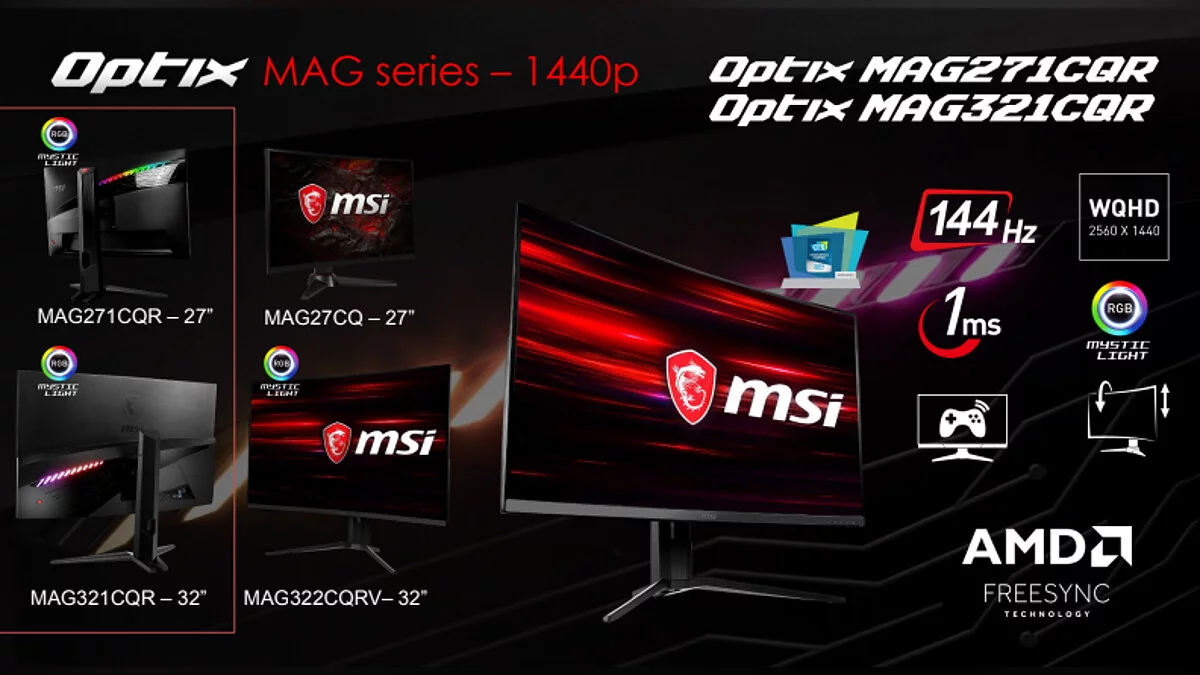 - MAG271CQR (27 дюйма, 1440p, AMD FreeSync, 144 Гц, 1 мс, Mystic Light);