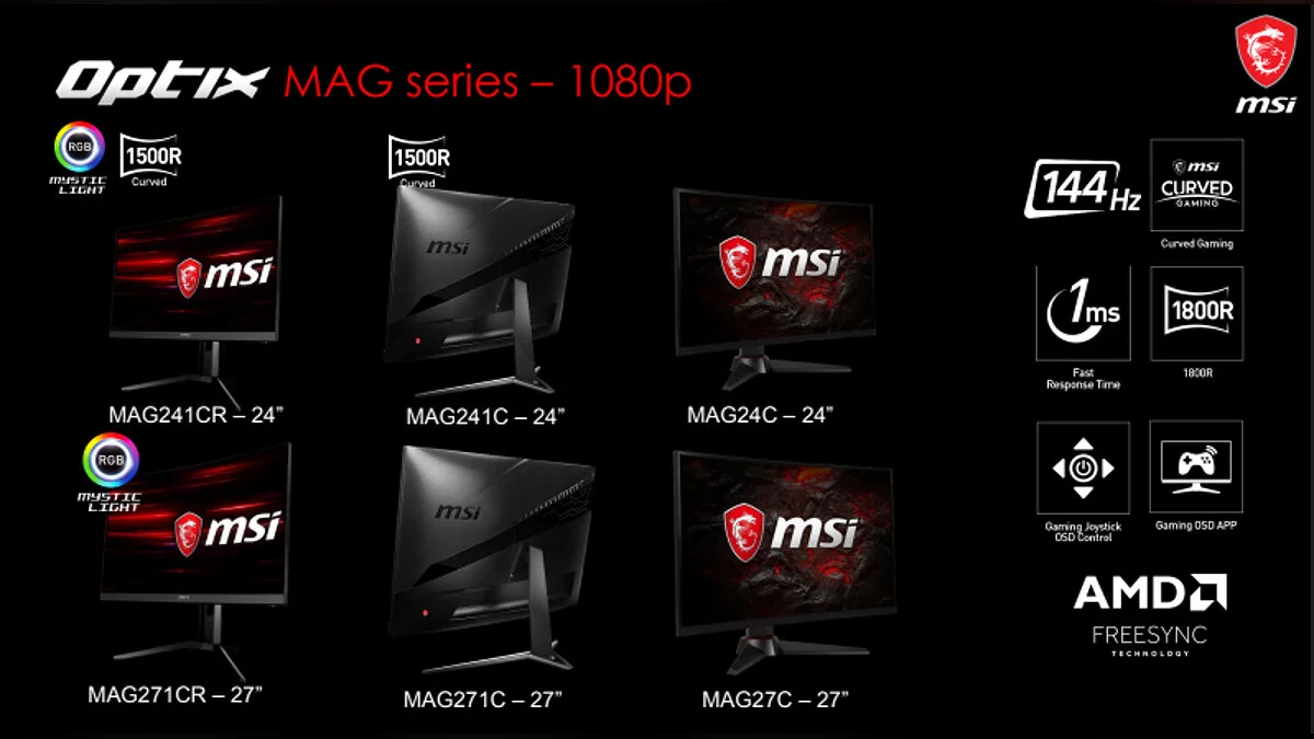 - MAG241CR (24 дюйма, 1080p, AMD FreeSync, Curved Gaming, 144 Гц, 1 мс, 1800R);