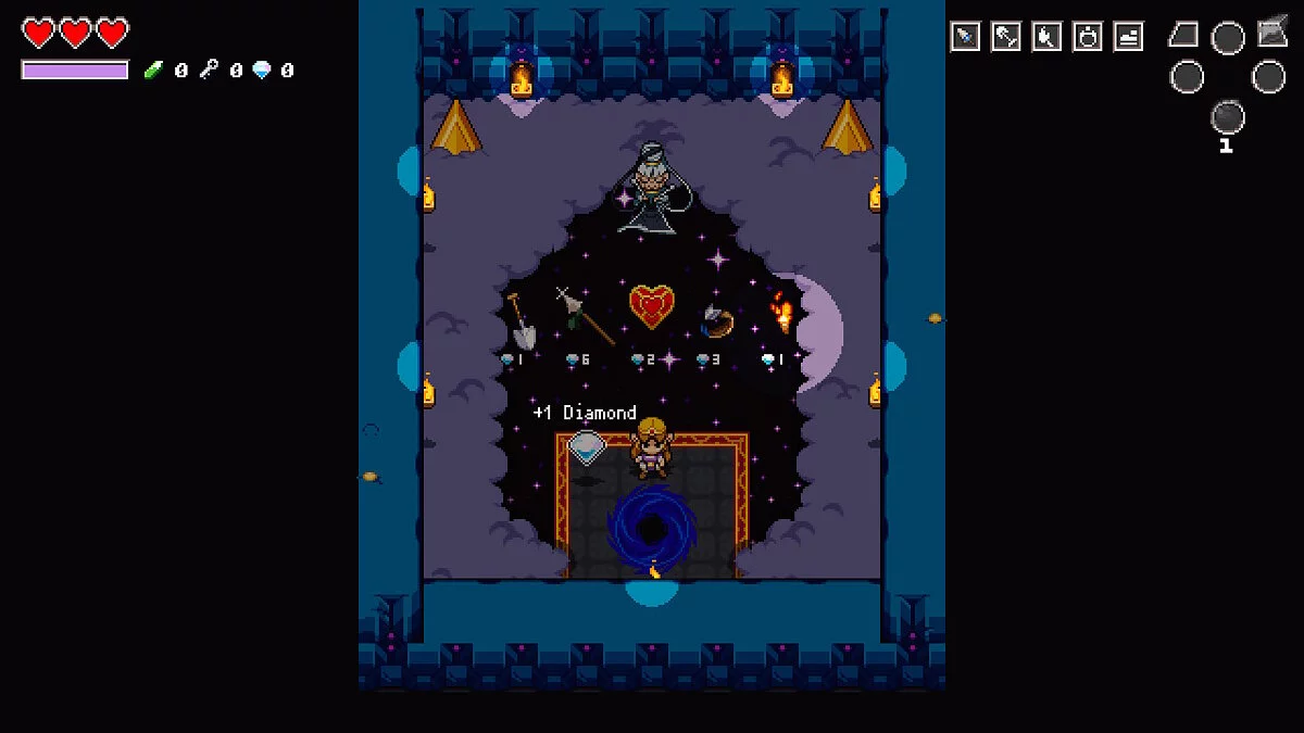 После экрана Game Over у персонажа из карманов исчезает только часть предметов и собранные рупии. А в местном магазине за алмазы дают прикупить предметы, сильно упрощающие прохождение.