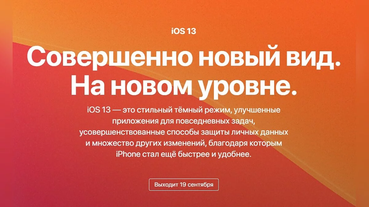 Apple объявила дату выпуска операционной системы iOS 13, которую получат все модели iPhone, начиная с 6s/SE. Кроме того, новая ОС также будет доступна на iPod Touch 7 поколения. Ее выпуск состоится 19 сентября.