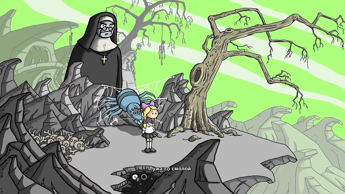 Во время него Лили побывает в монастыре и окрестной деревушке, проведет время в компании душевнобольных и несколько раз заглянет в свое подсознание — игра не самая большая. Геймплей довольно типичен для жанра: героиня бегает по локациям, собирает различный мусор и самыми нелепыми способами решает головоломки. К счастью, большинство подводных камней разработчики избежали: пиксельхантинг тут отсутствует напрочь, а самые сложные задачки можно пропустить.