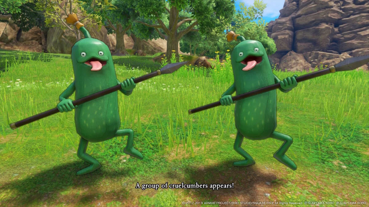 Правда, на первых порах в качестве оппонентов выступают какие-то смешные «слаймы» и карлики с иголками вместо оружия. Что-то серьезное будет лишь к середине игры, а поначалу все это выглядит как какой-то спин-офф к «Покемонам». Впрочем, ловить монстров ни к чему, а вместо покеболов в Dragon Quest 11: Echoes of an Elusive Age главный герой использует магию и меч.