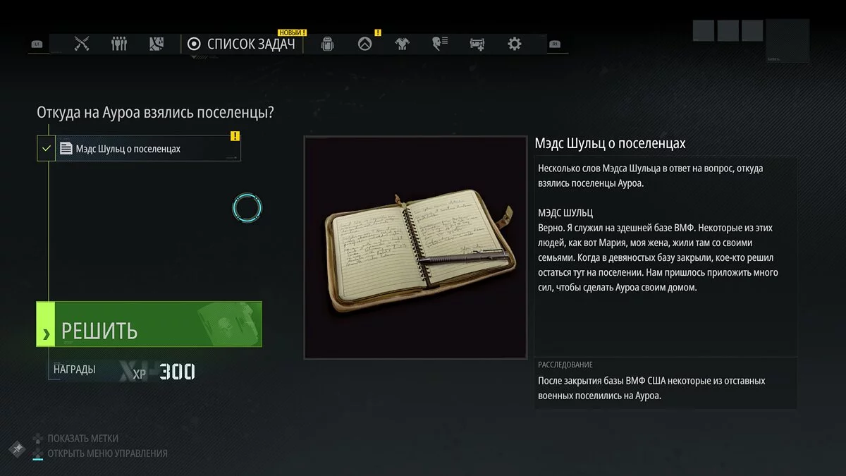 Хотите примеров? Извольте. Однажды, гуляя по карте, автор этих строк наткнулся на пустяковое, в общем-то, задание — выкрасть некую информацию из точки «А». Приехал на место и понял, что, помимо основной задачи, игра предлагает собрать данные, которые помогут продвинуться в расследовании тайн острова Ауроа. Сама по себе эта механика пустяковая — ищем зацепки по карте да сводим их одним движением кнопки в специальном меню.