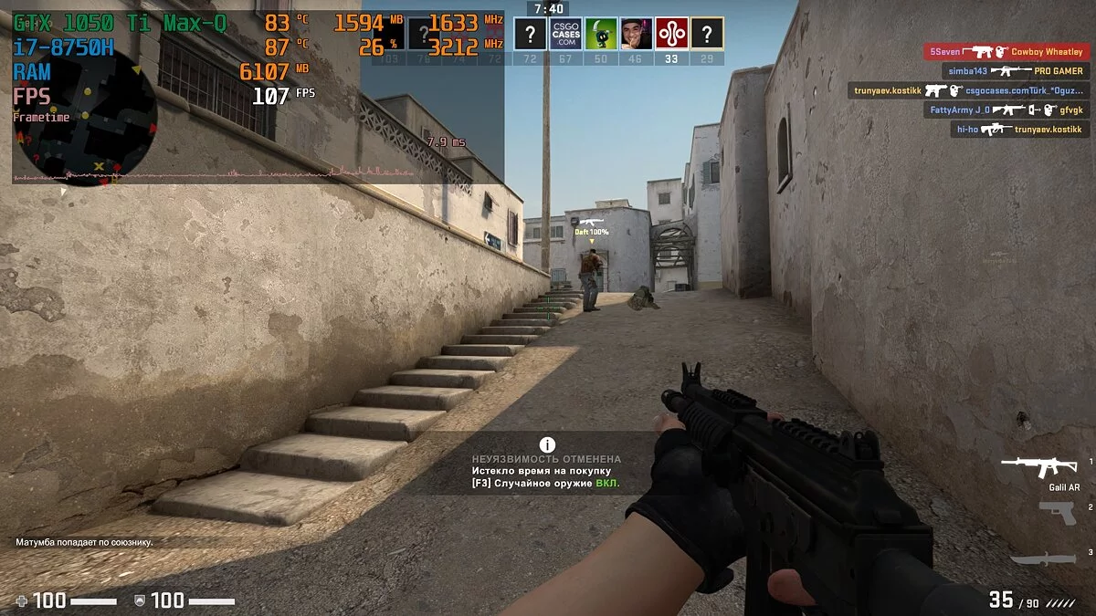 MSI GF63 8RC не метит в этот сегмент игровых ноутбуков, как бы вас не сбивал утонченный внешний вид. Он скорее для тех, кто любит засиживаться до утра в Apex, Fortnite, CS:GO, Dota 2. Назовите любой популярный сессионный проект — потянет спокойно. При желании можно даже будет катку скатать без питания.