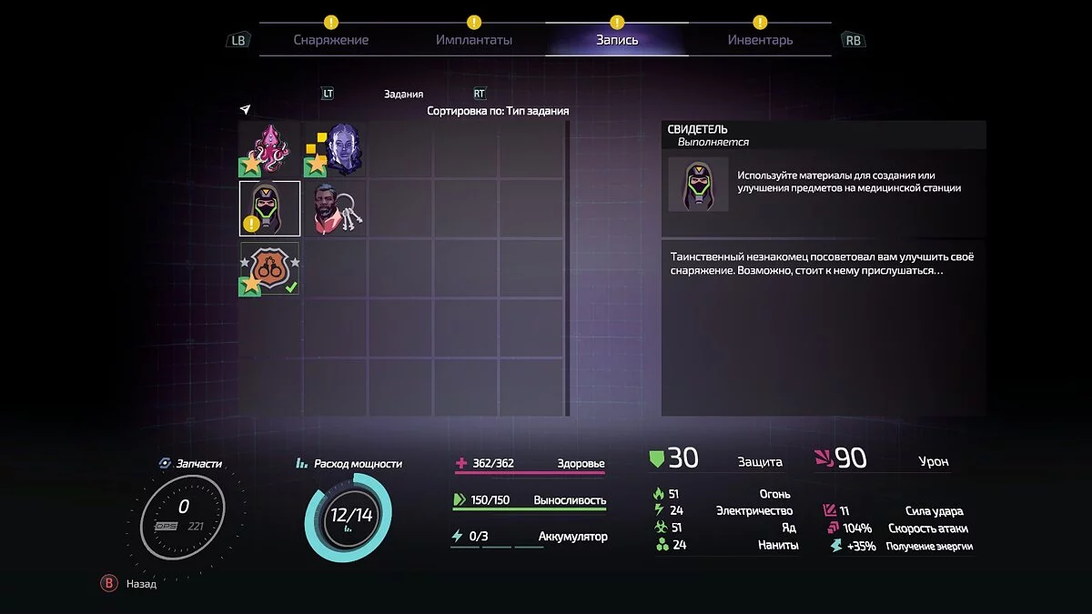 В нем фиксируются все актуальные задания. Получить их можно в ходе диалогов с мирными персонажами. Как правило, практически всегда у главного героя есть основное задание, а также несколько побочных поручений. Вторые следует выполнять сначала, так как они часто проще основного квеста и позволяют раздобыть хорошее оружие или новую броню.