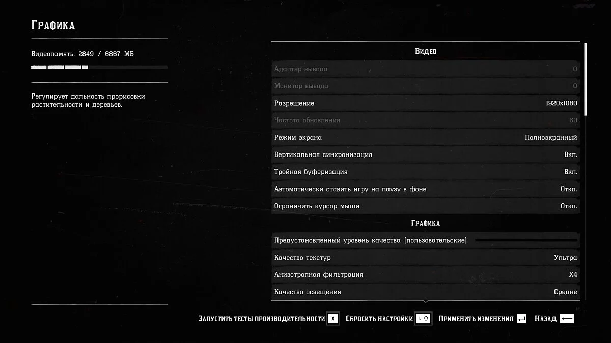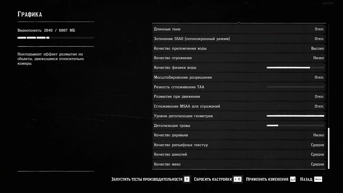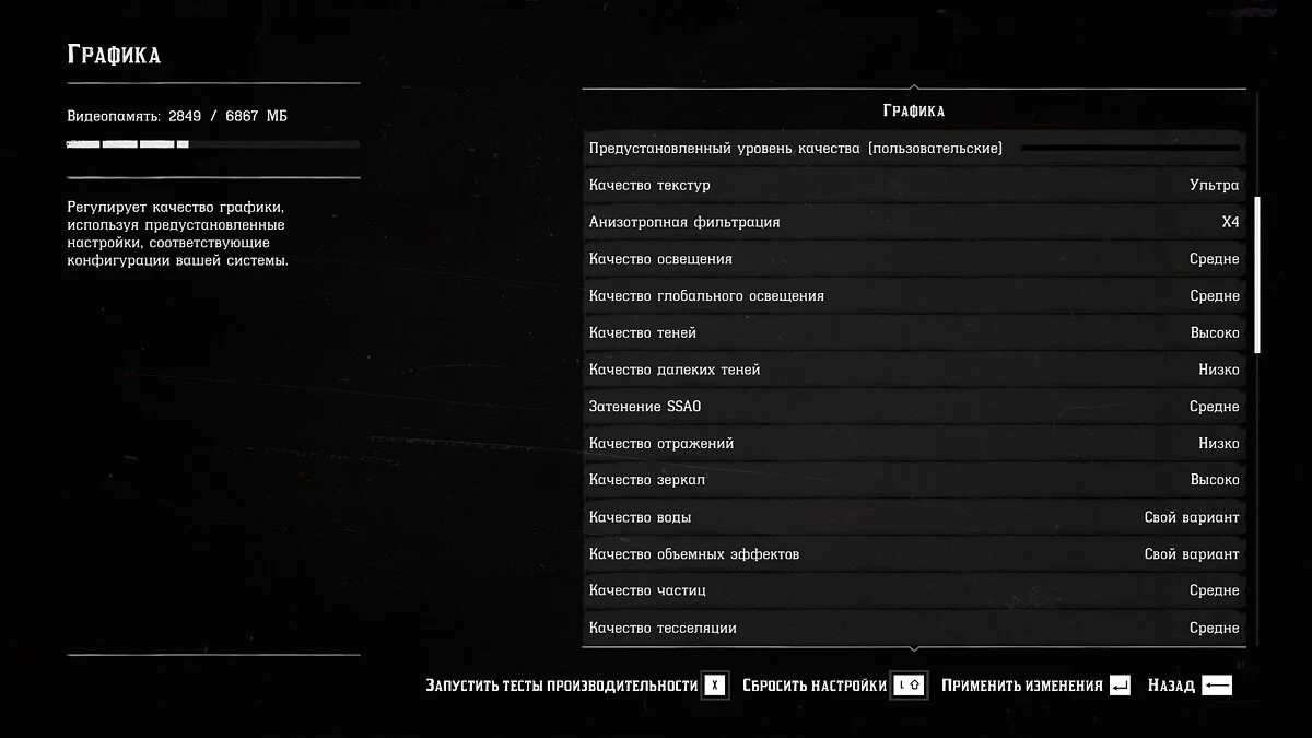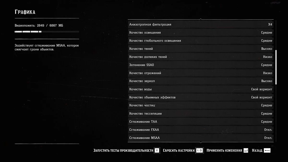 Если вы хотите получить идеальное соотношение качества картинки и производительности, то используйте именно этот пресет, который приведен выше. Однако если вы хотите получить чуть более красивую графику в Red Dead Redemption, не потеряв при этом стабильный фреймрейт, то можете изменить следующие параметры: