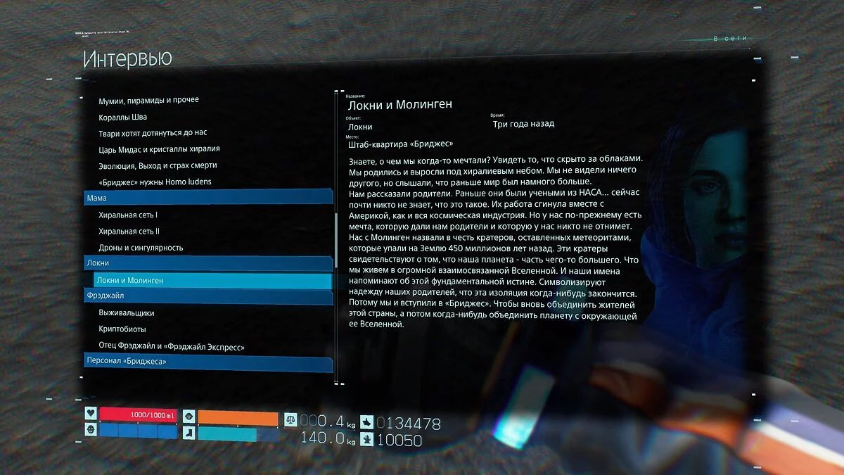 В игре есть персонажи Локни и Молинген, которых сыграла актриса Маргарет Куэлли (Margaret Qualley). Примечательно, что персонажей назвали в честь реально существующих кратеров, оставленных метеоритами, упавшими на Землю около 450 млн лет назад.