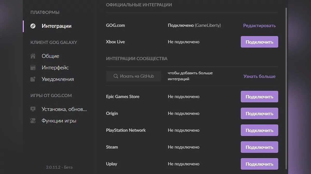 - GOG (учетная запись необходима для запуска Galaxy 2.0);
