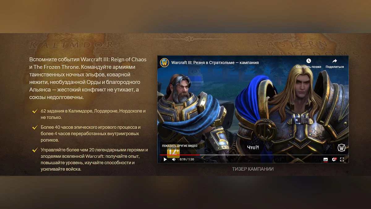 Да, прямого обещания переснять их не было, но все равно обидно, что в ремастере за 1200 рублей остался контент 2002 года. И это при том, что Blizzard даже сейчас радует отличными роликами по всем своим франшизам. Обидно? Однозначно!