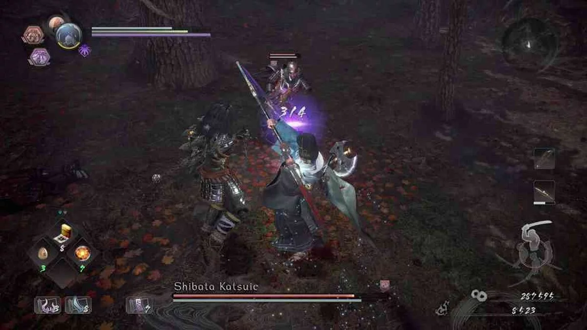 Уильям (William) — главный герой в первой Nioh. Бой будет довольно простой. Пусть Уильям бежит в вашу сторону. Пока он находится в движении, вы делаете одну сильную атака в высокой стойке. Он не может защищаться, пока бежит. Если он делает другие удары, то просто отбегите в сторону. У Уильяма не так много здоровья, поэтому этот бой не займет много времени.