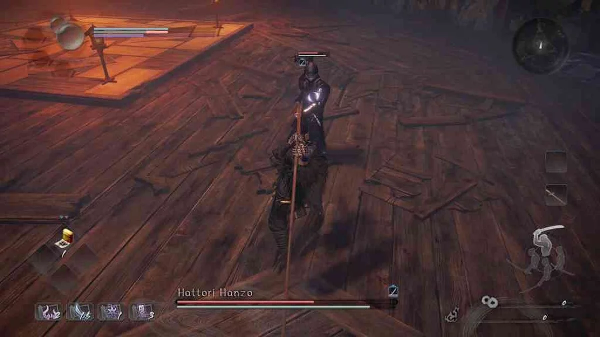 Босс использует деревянный меч и различные боевые приемы ниндзюцу. У вас есть двойные мечи, позвольте Като пропустить комбо, затем сделайте одиночную мощную атаку и повторите. Когда босс использует пылевые облака, не заходите в них, так как он будет прыгать на вас и пытаться выполнять захват.