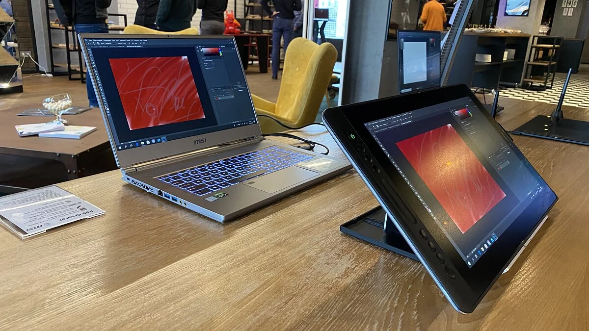 Так, с P65 Creator, не новым, но производительным устройством, можно было почувствовать себя художником, оценив и богатую палитру цветов дисплея, и скорость работы устройства в Photoshop. А вот Prestige 14 досталась роль сердца музыкального комбайна, к которому была подключена парочка из синтезатора и микшера. К сожалению, битмейкеры, готовые продемонстрировать такую связку в деле, на мероприятии замечены не были.
