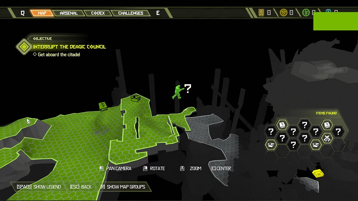 В то время как некоторые предметы, такие как Мод-боты (modbot) и Кодекс (codex), появляются на карте автоматически, когда вы ее исследуете, секреты не будут на ней отображаться, пока вы не пройдете поблизости. Вы узнаете, что прошли мимо одного из этих предметов, когда увидите белый вопросительный знак на карте или большой вопросительный знак в игровом мире.