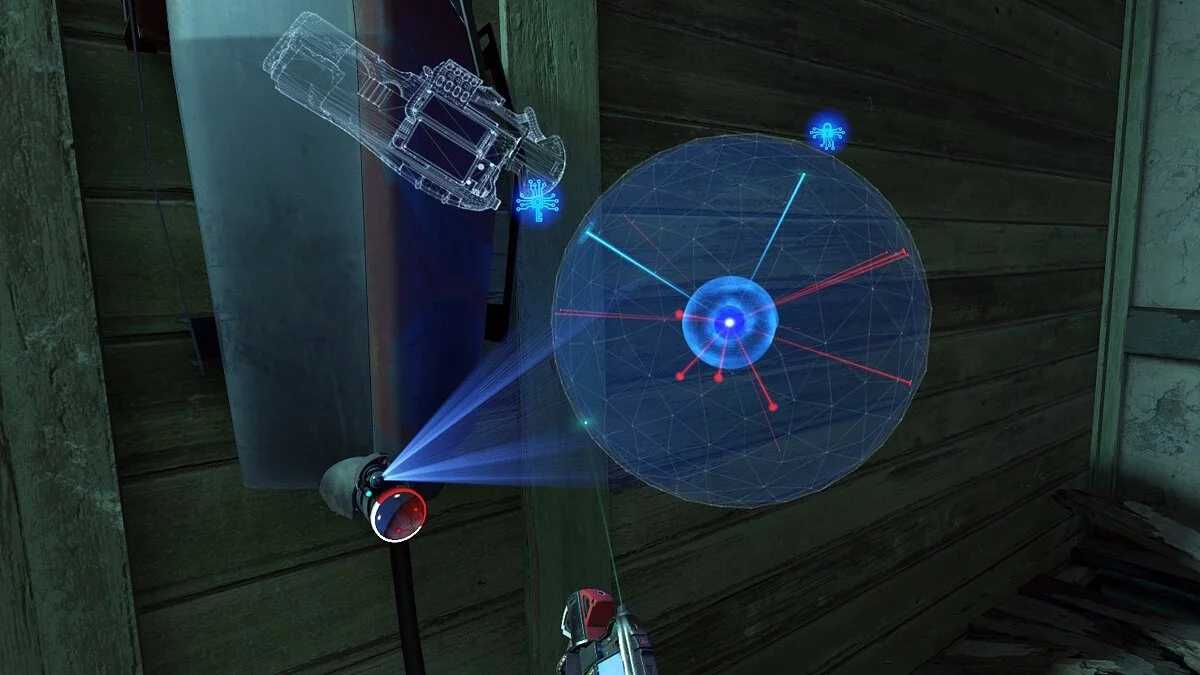 Не то чтобы это можно было назвать отдельной головоломкой, потому что это скорее одна из постоянно использующихся механик, но некоторые моменты все же стоит прояснить. В игре часто можно встретить силовые барьеры, закрытые двери и другие препятствия, которые нельзя обойти привычным способом. В таких ситуациях вам понадобится мультиинструмент Аликс, который можно выбрать, нажав на стик на правом контроллере.
