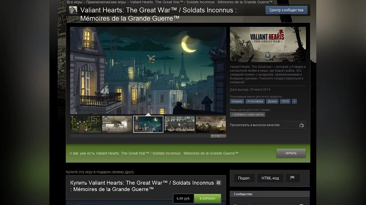 Valiant Hearts: The Great War представляет собой адвенчуру с трогательной историей нескольких героев, произошедшей во времена Первой мировой войны.