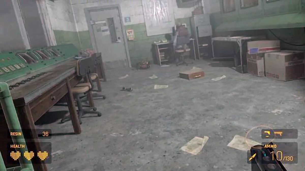 Сзади от пульта есть две двери. За первой есть кое-какие припасы, а вот вторая дверь ведет в темный коридор, который выведет в темное помещение с несколькими зомби. Разумеется, с ними нужно разобраться как можно скорее. После того, как зомби перестанут преграждать путь, игроку нужно пройти к дальней стене комнаты.