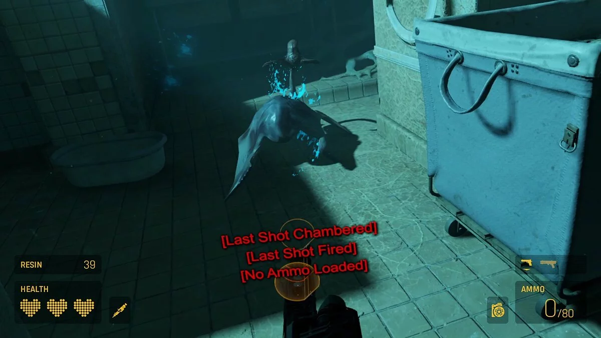 Одна из самых напряженных сцен в игре — встреча с боссом в виде странной инопланетной собаки, которая чем-то похожа на хедкраба, но при этом может бить током и залезать в человеческие трупы, реанимируя их и используя в качестве проводников электричества. Сама по себе эта «собака» не очень опасна, но если она нашла труп, то для победы придется выработать правильную тактику боя, чтобы сохранить побольше здоровья и патронов.