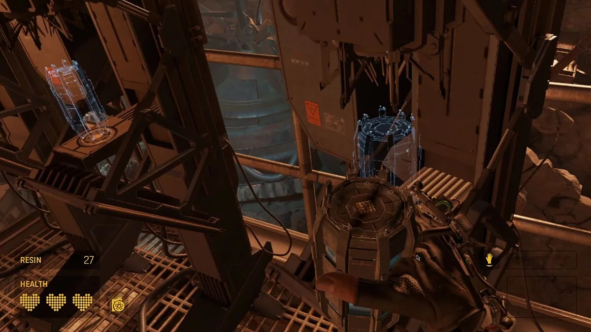 Конец уже близко, но впереди очередное препятствие. Чтобы не дать Аликс прорваться к бункеру Альянса, «комбайны» заминировали комнату. В ней много взрывоопасных бочек и мин, причем добраться до последних невозможно — все они расставлены таким образом, чтобы к ним нельзя было поднести мультиинструмент для взлома. Придется искать другой путь. К счастью, он прямо перед вами, главное проявить внимательность.