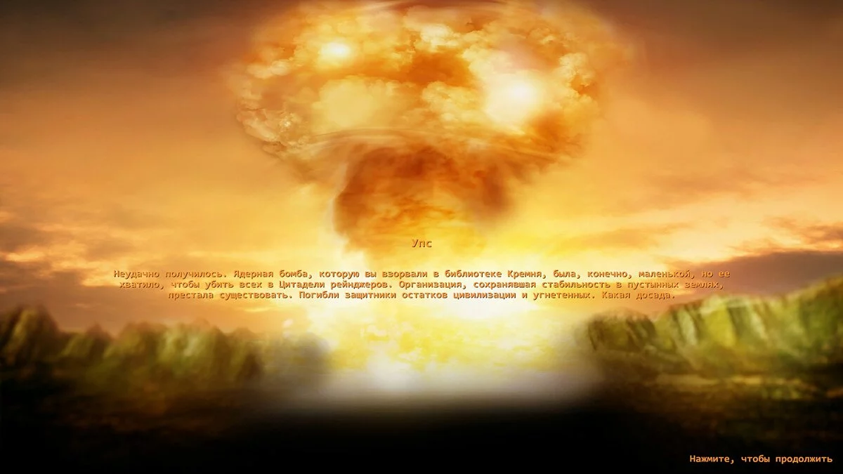 Но этот вариант, разумеется, считается провальным, хотя в переиздании знаменитой постапокалиптики этот вариант досрочной концовки все еще присутствует.