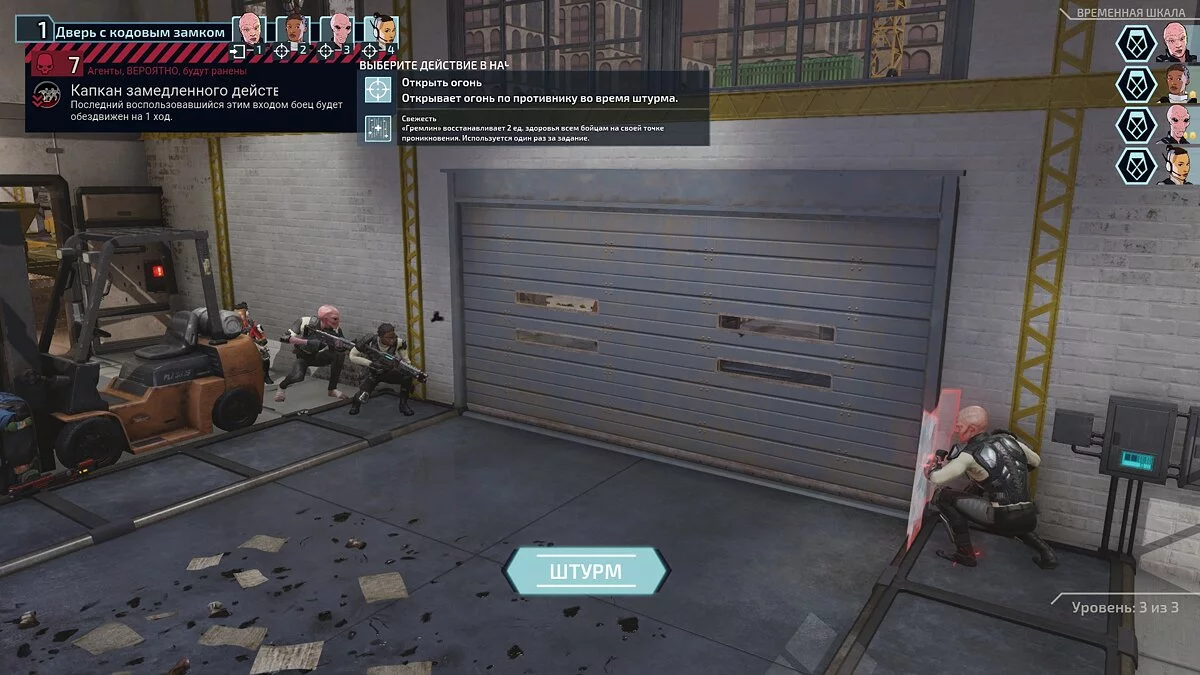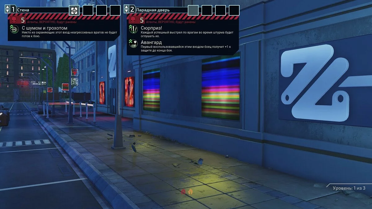 Сами же миссии могут содержать несколько этапов. Каждый новый этап начинается с расставления оперативников по точкам входа. Это интересная механика, которая не дает расслабиться. Даже если первая секция легкая, то расслабляться не стоит, ведь вам еще нужно продвигаться вглубь.