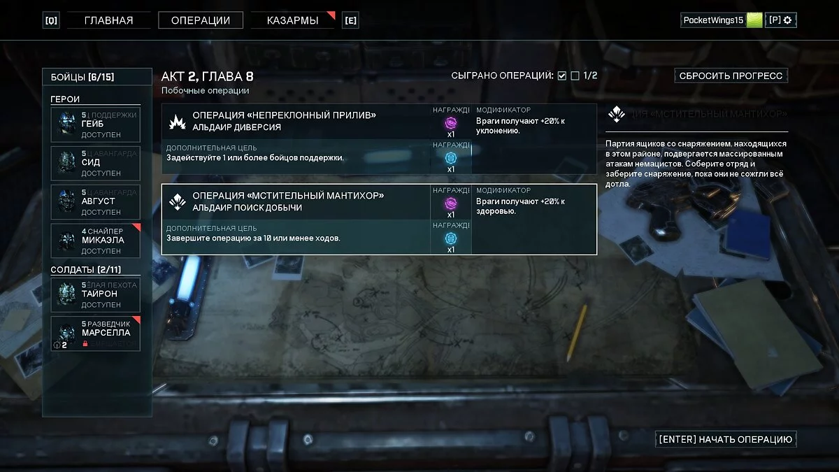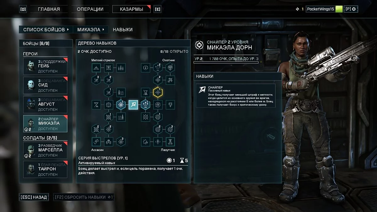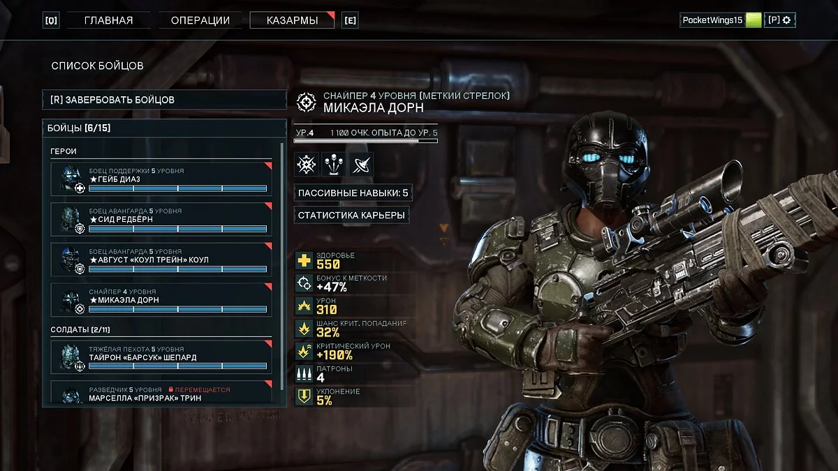 Поскольку история в игре небольшая, то и бойцов немного — у меня было всего шесть. Состав команды жестко привязан к прохождению, сюжетных героев нельзя терять вовсе, чего не скажешь о примкнувших «Солдатах» (они в отряде, но их смерть в бою роли не играет, кроме потери прокачки).