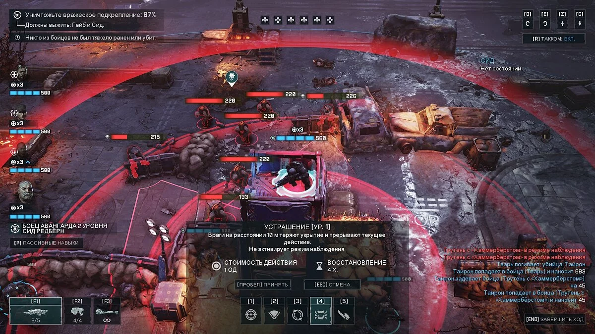 Все проделанные упрощения позволили сделать миссии Gears Tactics динамичными и относительно быстрыми (10-20 минут). За время прохождения мне практически ни разу не было скучно, наоборот, хотелось поскорее начать следующую миссию. Во многом это заслуга вышеописанных изменений, включая кровавые и жестокие добивания, но есть и вполне привычные вещи.