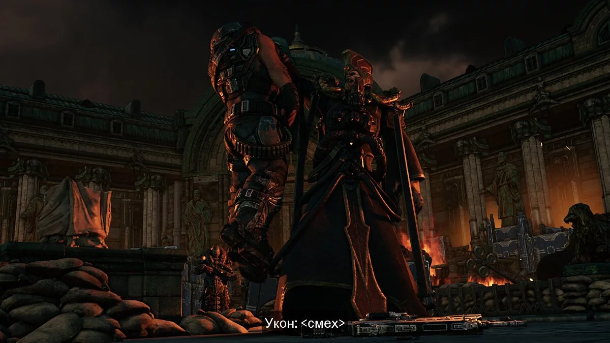 К числу главных упущений Gears Tactics я бы отнес сюжет. Начинается он с крайне невнятной завязки — за 2 часа до тотальной бомбардировки планеты в убежище Гейба постучали и потребовали вернуть папку с секретными данными, которая осталась… прямо на столе главнокомандующего в его ставке. Видимо, забыли эвакуировать. Притом, что штаб уже захвачен Саранчой, и должен быть тщательно изучен кем-то из противников.