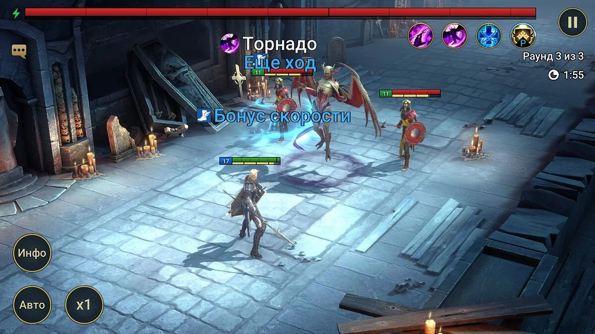 При этом, как часто бывает в мобильных батлерах, тут всегда есть некие цели — долгосрочные и краткосрочные. Конечная точка кампании — схватка со злодеем, повелевающим силами тьмы.