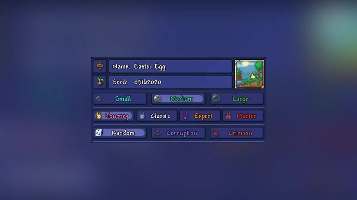Чтобы зайти в секретный мир, вы должны создать персонажа в режиме «Приключение» (Journey Mode). Далее нужно провести настройку точно также, как на скриншоте ниже: