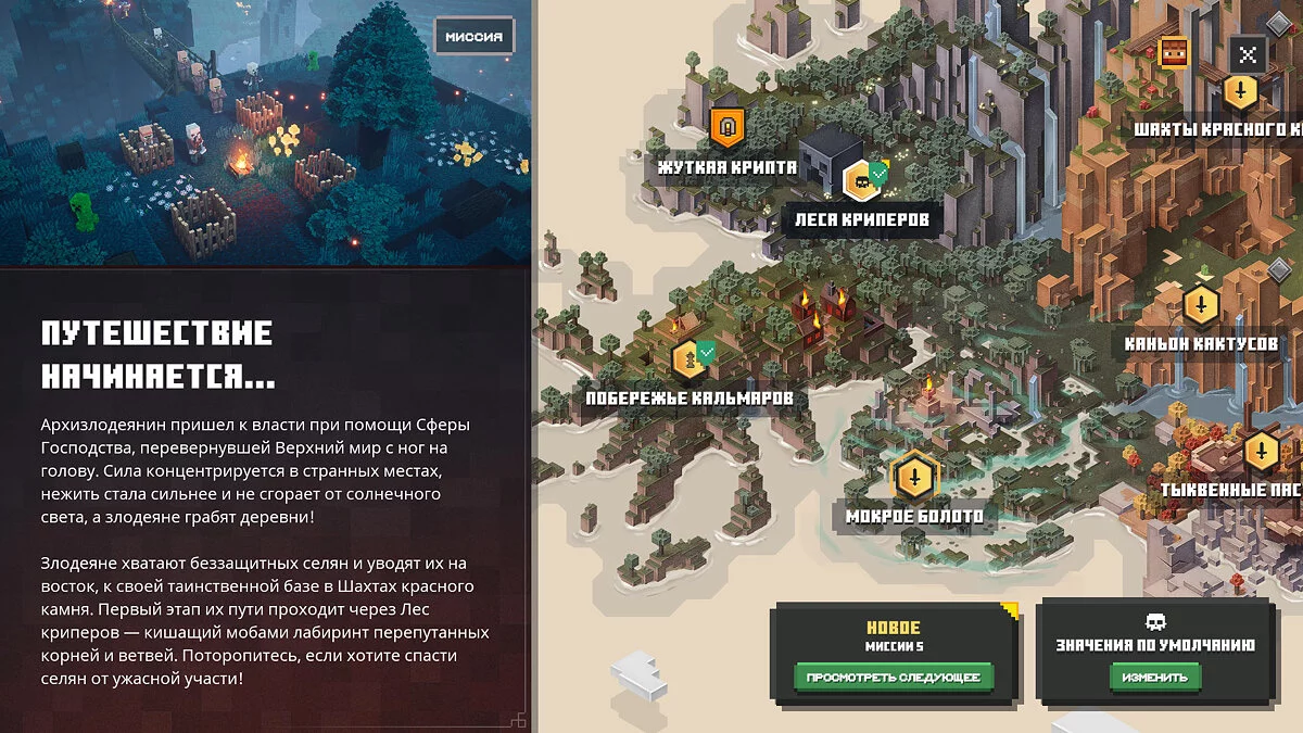 И хоть в описании к каждому заданию можно немного узнать о мире игры, на деле Minecraft: Dungeons практически не дает никакого сюжетного контента — только короткие брифинги и беглые заставки. Впрочем, в играх наподобие Diablo сюжет, в общем-то, и не нужен, поэтому снижать оценку за куцую историю мы не будем. Просто помните: геймплей тут на первом месте.