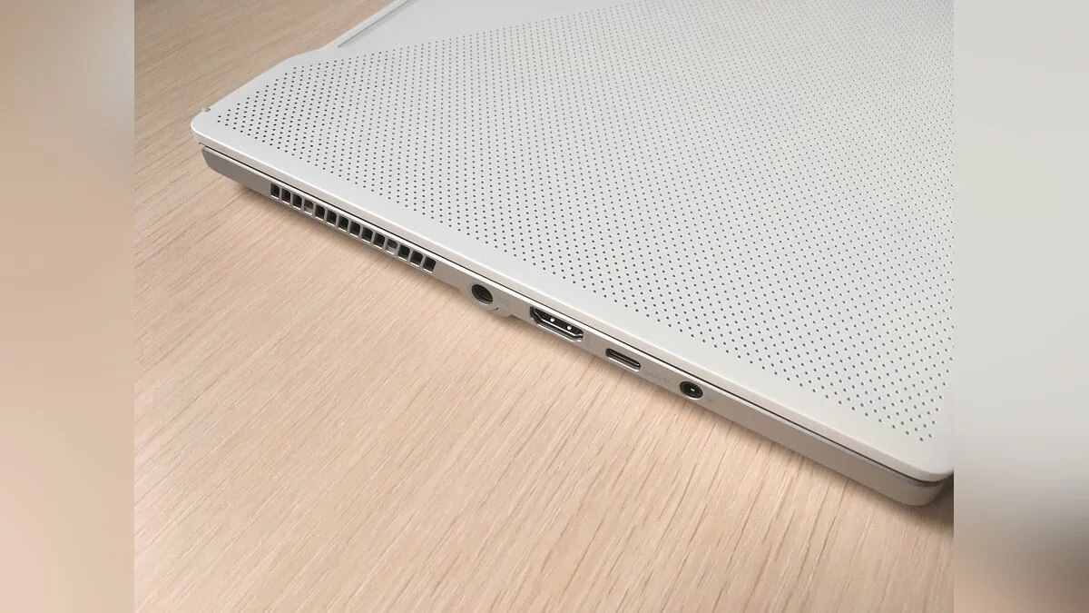 На левом борту присутствуют разъем для питания, HDMI, USB Type-C с поддержкой DisplayPort 1.4 и Power Delivery. Благодаря HDMI 2.0b и DisplayPort 1.4 можно выводить игры на телевизор или внешний монитор с поддержкой HDR и в разрешении 4К. Для этого, естественно, понадобится соответствующий стандарту кабель. Также через один из портов Type-C ноутбук можно заряжать, используя легкую и компактную зарядку. Это удобно, так как при повседневном использовании вам не нужно таскать с собой более крупный блок питания.