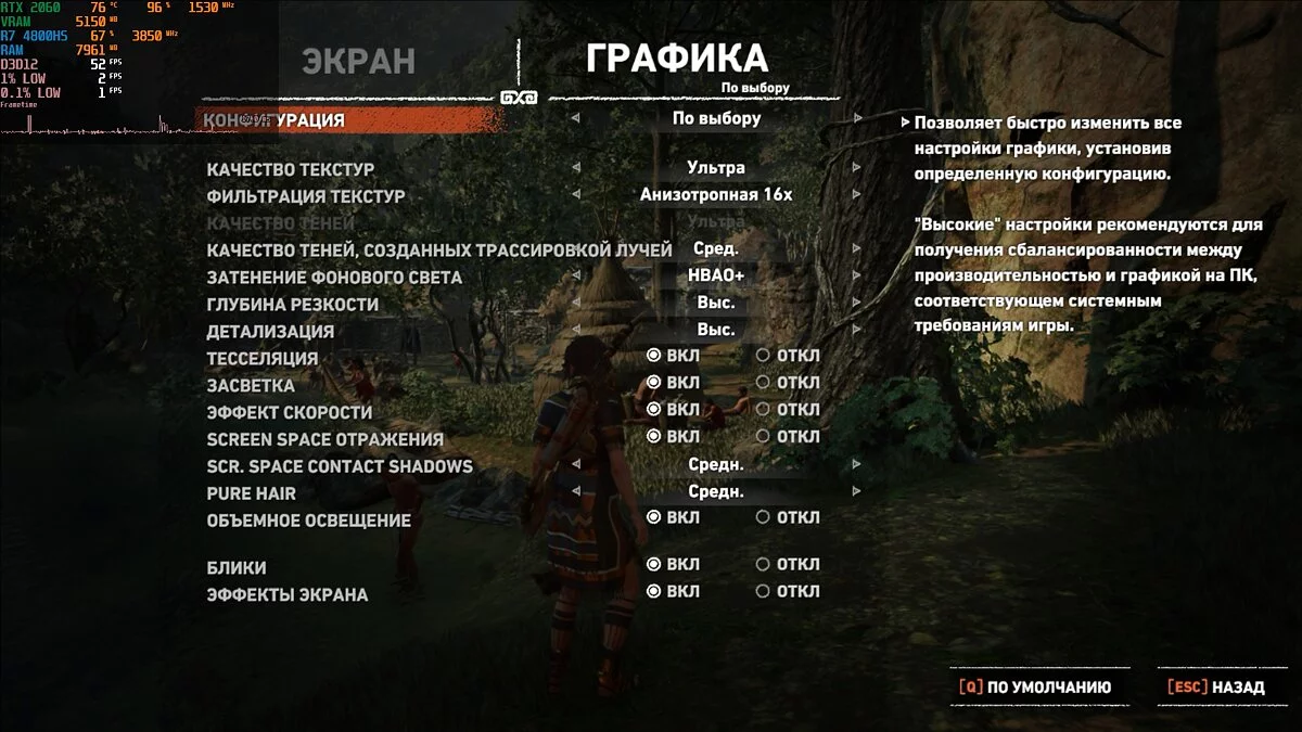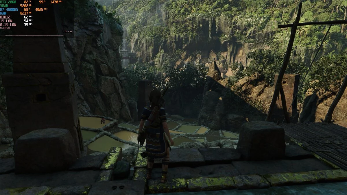 Shadow of the Tomb Raider. Игра хоть и поддерживает трассировку лучей, но больших преимуществ это не дает. Тем не менее в некоторых локациях разницу заметить все же можно. Настройки мы выставили максимальные, но трассировку лучей оставили на среднем. Тестирование происходило на карте «Тайный город», так как это самая требовательная локация в игре.