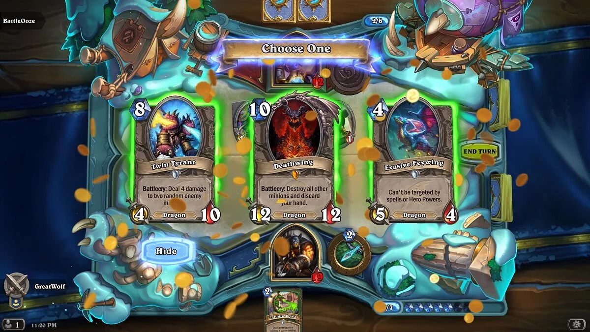 Для каждого класса найдутся сочетания с двумя другими классами, то есть всего десять возможных комбинаций. И да, это довольно мало, учитывая суммарное количество новых карт (их будет 135), но разработчиков можно понять: гибридные карты могут полностью изменить расклад сил в игре и подход к колодостроению.