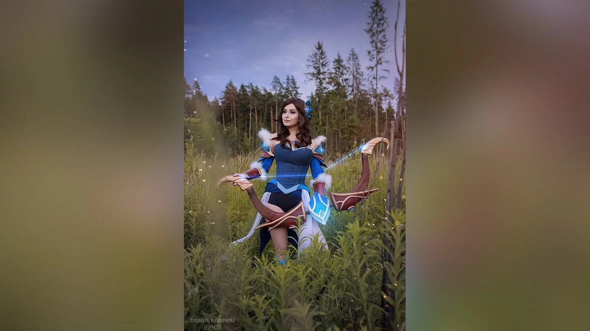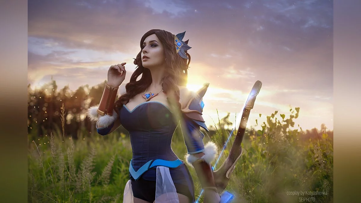 Ольга Базанова часто делала косплей по мотивам DotA 2. На ее счету как волшебницы (Crystal Maiden, Lina), так и лучницы (Windranger). Мирана же во время боя сочетает магию и смертоносные стрелы. Неудивительно, что этот образ так подошел девушке. Фотограф — Sei.