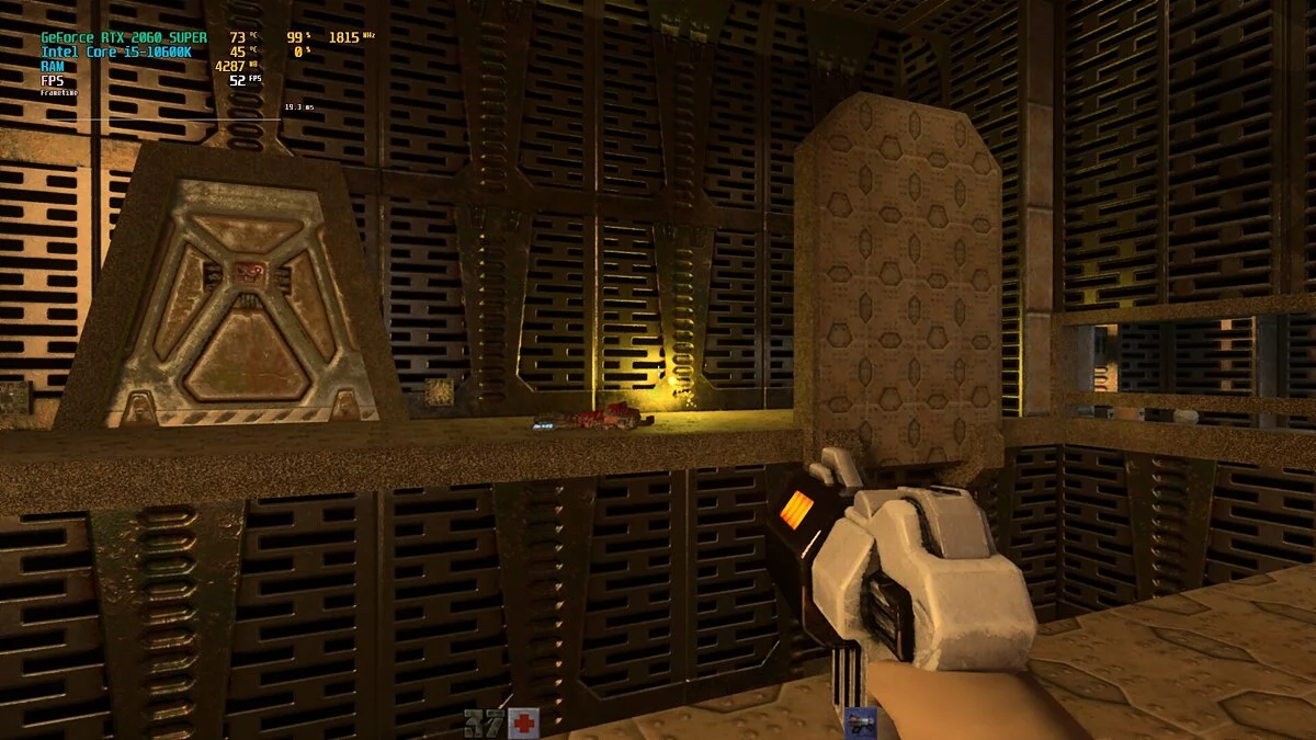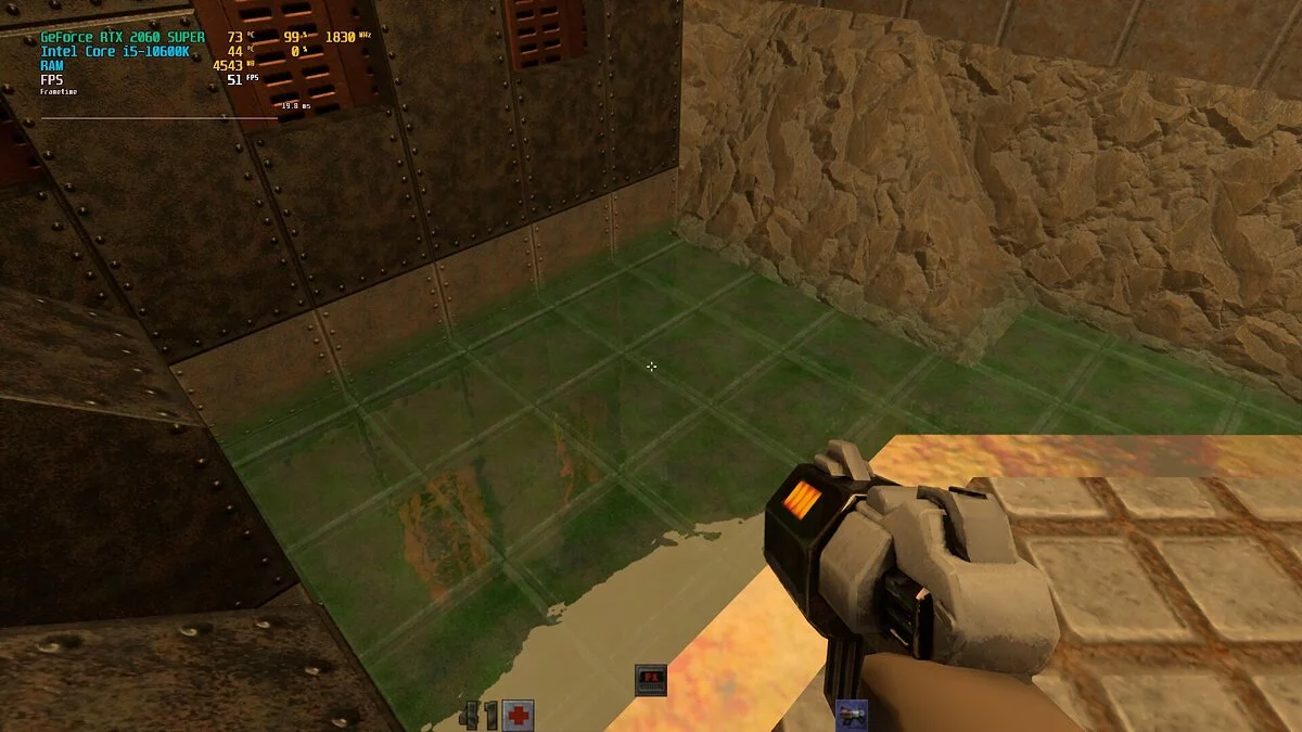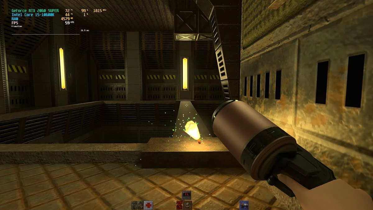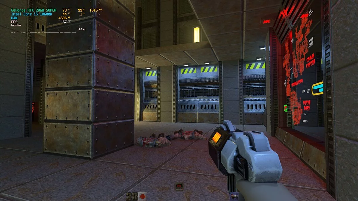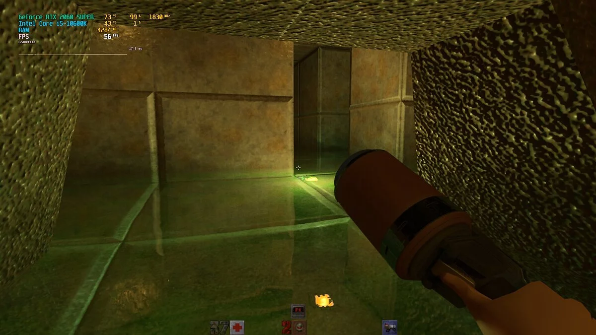 Quake II RTX. Как может обойтись тест на лучи без одного из культовых шутеров id Software, благодаря технологии NVIDIA получившего вторую графическую жизнь. Как и в случае с другими играми с RTX ON, трассировка на GeForce RTX 2060 SUPER уступает старшей видеокарте.